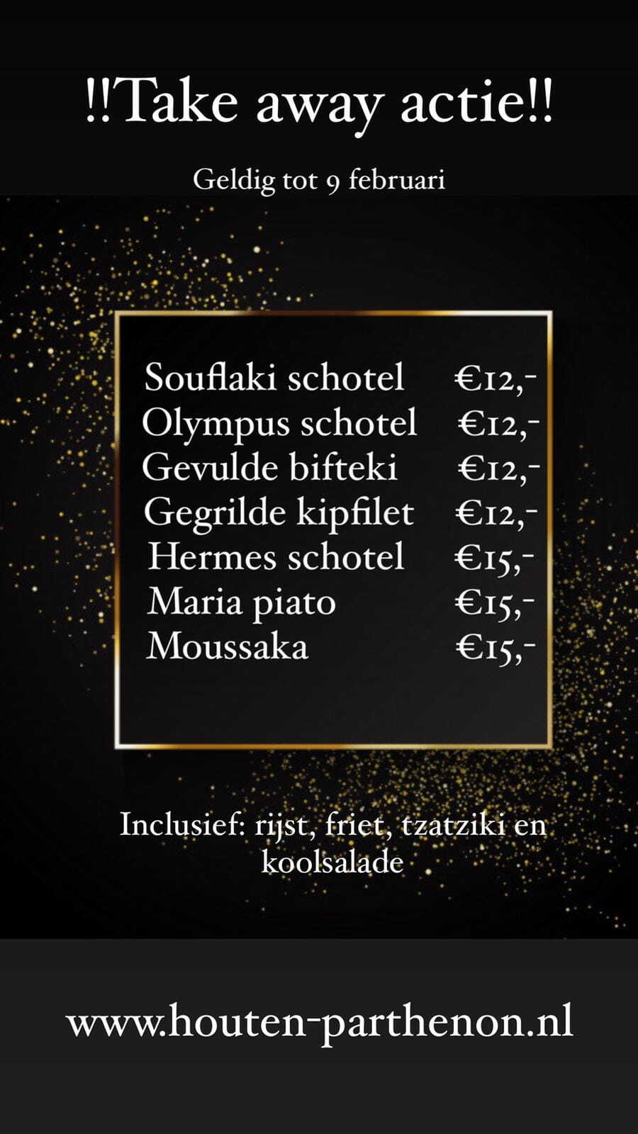 PARTHENON heeft zijn deuren voor u geopend in 1989 en was daarmee het eerste Griekse restaurant in Houten. In de Griekse mythologie staat Parthenon voor inspiratie, sprankelend en verrassend als de oergodin van het Parthenon te Athene. We willen u “Parthenon” laten “proeven” en uw smaakpapillen prikkelen. Parthenon is een ervaring. Je moet het proeven en meemaken. Wij nodigen u mee uit op een culinaire reis.